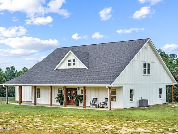 Beautiful farmhouse on 3.9 acres, practically brand new ! You will love the large kitchen with center island & walk in pantry, open living room with 10 foot ceilings, split floor plan, custom tile showers, walk in closets & huge triple garage with large storage room. Attic is very spacious & offers lots of potential for future additions. Beautiful front & back porches complete the Southern charm of this lovely family home.