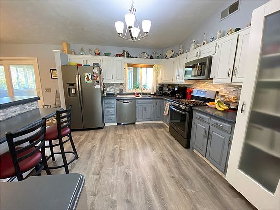 This move in condition home will wow you with all the upgrades. New flooring, light fixtures, bathroom upgrades, freshly painted through out Upstairs f.r. addition with statement stairs leading to the rear yard from the upper balcony. Open concept main level includes light grey kit.,/with breakfast bar, l.r. & d.r. area. Master b.r. w/walk in closet and full bath, lower level has additional f.r. & den or "office" space. La Piazza room / patio w/ heat perfect for summer nights or cooler months playing cards. Pittsburgh & Cleveland apx. 1 1/2 hr. drive, Erie an hour & Youngstown apx. 45 minutes. Conveniently located just outside town.