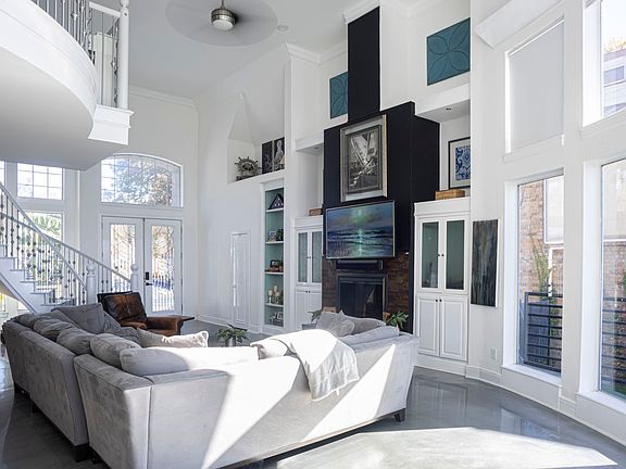 Perched on a scenic hillside in the exclusive gated community of Chandlers Landing, this stunning custom home offers sweeping panoramic views of Lake Ray Hubbard from nearly every room. Step through elegant beveled glass doors into the main level, where a wall of windows floods the space with natural light and frames the shimmering lake beyond.