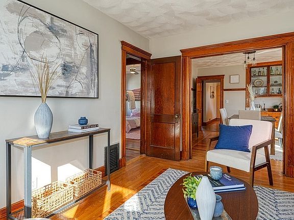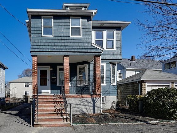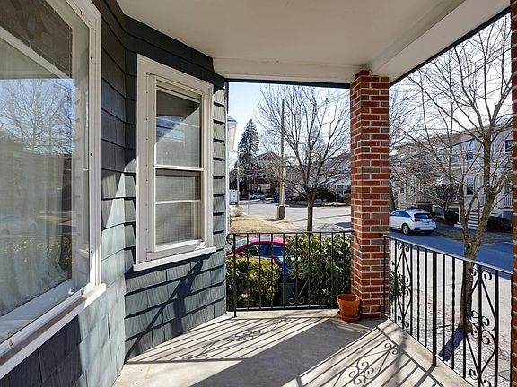 Gorgeous 2nd and 3rd floor condominium features a wonderful blend of traditional charm and modern conveniences. The thoughtful layout provides ample space for comfortable living, while original wood and a beautiful stained-glass window offer classic beauty and grace. Recent updates includes renovated kitchen and bathrooms, many new light fixtures, and fresh interior paint. Living room with natural wood and stained-glass window leads to the dining room with plate rail and built-in china cabinet. 2018 kitchen renovation with cork floors, stainless steel appliances, granite countertops, plus lots of storage and food prep space. The large 3-season back porch is ideal for morning coffee or office use. Three bedrooms and a full bathroom complete this level. Upstairs is a family room with skylights, perfect for overnight guests, as well as a recently renovated 3/4 bath. Exclusive basement space. Close to public transportation, commuter rail, great dining options, park/playground, and shops.