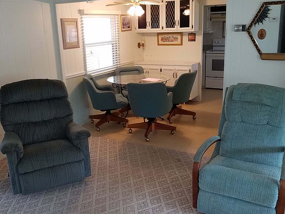 Very well maintained single wide 12’ X 56’ mobile home in Paradise Village in Lake Placid Florida. Factory added extra room in Living room and master bedroom make this home spacious. Brand new Refrigerator and Glass top Range. New energy efficient windows in Living room and dining room. 2 full bathrooms, 1 with a 48” shower and 1 with a tub, both with newer Kohler toilets installed in 2019. Washer and dryer in exterior workshop accessible through screened in Patio. Carport and double wide driveway. Plenty of closet space with a double walk-in closet and closets in each bedroom. Built ins in dining room and bedroom 2. Move in ready. All furniture in the pictures is included. Park rent is $414 per month and includes free outside water, free sewer and garbage dumpster. Park has an active air conditioned clubhouse with plenty of activities and a heated pool. Also the park has it’s own marina and boat launch on Lake Clay with slip rent of $100 per year. Park is a mix of full time residents and seasonal residents.