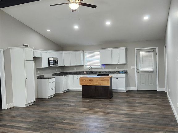 This charming 3 bed, 2 bath home features granite countertops, LVP flooring, walk-in closet and step-in shower in the master bath. Enjoy your mornings or evenings on the screened-in back porch. 1 car attached garage with 2 separate driveway entrances for additional parking. Long front porch for your rocking chairs and swing. Located just outside of town. This one is a must see.