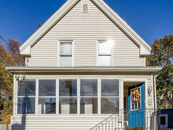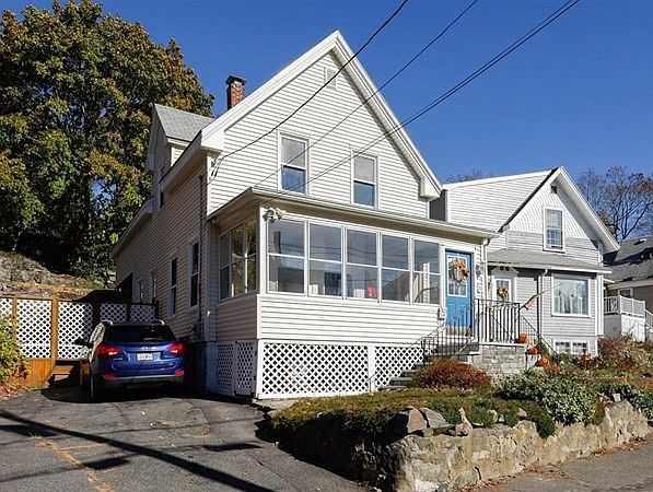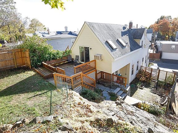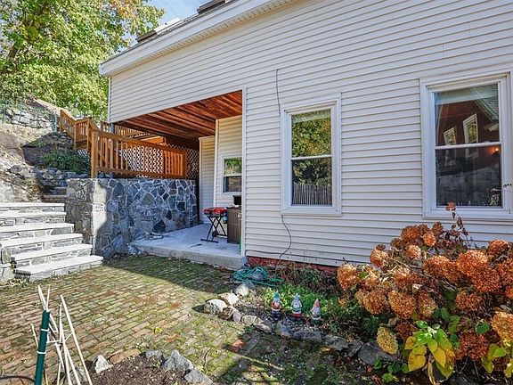 This home will surprise you! Deceiving from the street it's actually really spacious inside w/a nice open feel, starting with the 3-season porch. Beautiful original details are throughout with arched doorways, large moldings, French doors and hardwood floors. Both living and dining rooms are entertainment sized while the kitchen opens to a generous eating area complete with built-in corner seating w/storage and oversized pantry. Nicely renovated 1/2 bath too. Upstairs you will be amazed by the Huge master bedroom with soaring cathedral ceiling, skylights & exposed beams. You even have sliders to a private rear deck! The second bedroom can easily accommodate a king-sized bed and also offers a walk-in closet. Between the hallway & master bedroom is another room that the current owners use as a walk-through closet/dressing room - but large enough for an office as well! The full bath features a decorative tile tub surround and tile floor. Cool terraced yard w/extensive new stonework!