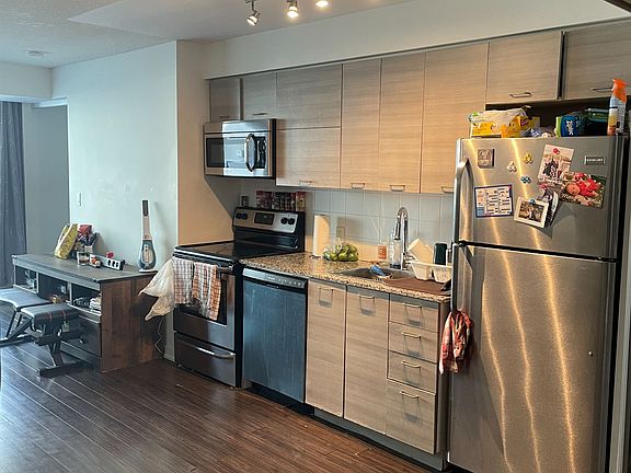 Jan 1 Move in. Great 2 Bedroom 1 Bathroom Condo For Rent In A Boutique Building With Convenient Retail On The Ground Floor. Laminate Flooring Throughout, Frosted Sliding Glass Door To Bedroom, Walkout To Balcony. Great Gym In The Building. Steps To Liberty Village, Queen West, T.T.C Streetcar At Your Doorstep, Over 70,000 Sqft Of Shopping Next Door - A New Longo's, Canadian Tire And Winners On The Adjacent Corner, Restaurants, Lcbo, Starbucks, Goodlife Fitness, And Much Much More.