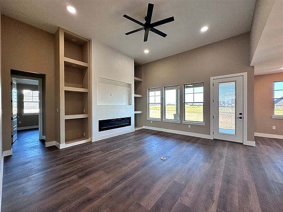 Move In Ready! Welcome to SaddleCrest Estates — where modern comfort meets Texas charm. This stunning 3-bedroom, 2.5-bath home offers the perfect blend of style and laid-back living, just minutes from downtown Weatherford. Step inside to a spacious, open-concept living area that’s perfect for relaxing or entertaining, with breathtaking views of the rear porch. The living room features built-in shelves on both sides of the cozy fireplace, adding character and storage. The chef’s kitchen is a true highlight, boasting a large waterfall island, in-wall oven, stainless steel appliances, and plenty of counter space — making meal prep a joy. Adjacent to the kitchen, a generous mudroom and laundry combo keep everything organized and out of sight. Each bedroom includes a walk-in closet, and the primary suite is a private retreat with an ensuite bath featuring dual sinks, a walk-in shower, soaking tub, and an expansive closet built for two. The formal dining room can easily serve as a home office or playroom to fit your needs. Enjoy nearly two acres of open land — perfect for outdoor activities, future plans, or simply soaking in the Texas skies. Work from home hassle-free with high-speed AT&T Fiber, and benefit from your own private well—NO water bills! With NO HOA and NO city taxes, your investment is truly yours. Located just 10 minutes from the charming downtown square filled with restaurants and shops, this home offers the perfect balance of tranquility and convenience. Don’t miss your chance to make this beautiful property your new home. Txt keyword ZEAL24 to 88000 for Virtual Tour & more!