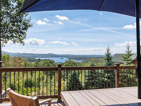 Welcome to 20 Keepers Lane, a stunning Adirondack-style home in the premier gated community of Meredith Bay. Perched on a coveted summit lot, it offers sweeping views of Lake Winnipesaukee and the surrounding mountains. Designed to capture both sunrises and sunsets, nearly every room enjoys lake and mountain views. Distinctive details include hand-dipped cedar shingles, soaring 10’ ceilings, Canadian birch hardwood floors, and a floor-to-ceiling stone fireplace. The gourmet kitchen boasts Cambria quartz counters, custom cabinetry, walk-in pantry, and high-end Miele & KitchenAid appliances. Enhancements by the current owners include a private fifth bedroom suite above the garage, spa-inspired lower-level bath, custom built-in maple bunk beds, professional landscaping with irrigation, and a heated/cooled oversized garage. Comfort features include a whole-house generator, multi-zone propane heat & A/C, radiant-heated sunroom, Nest thermostats, and abundant storage. Outdoor living shines with views from a Trex deck, expansive paver patio, and hot tub. Meredith Bay residents enjoy resort-style amenities accessed by groomed walking trails or golf cart path to Akwa Marina—two pools, hot tubs, sandy beach, seasonal restaurant, gym, tennis, pickleball, and more—all within a private, gated community.