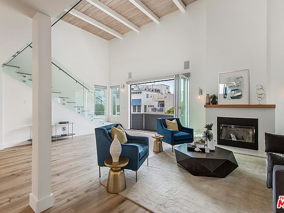 Rare entertainers dream Beach Penthouse on the Marina Peninsula with Ocean View! This fully renovated 4 Bed/4 Bath townhome, reimagined by acclaimed LA designer Lori Dennis, is steps from the beach and on one of the most desirable walking streets in LA. The home has a great open floor plan with high ceilings, two fireplaces, walkable rooftop skylights, and all new energy efficient windows and doors, creating a home awash in natural light. Custom-installed 9 La Cantina doors open up living/dining rooms to the greenery of Ketch St and the ocean. New kitchen includes custom cabinetry, Bosch Fridge, Thermador Range/Oven & Dishwasher. Master suite features fireplace, balcony deck, and bathroom with dual sinks, oversized shower, and stand-alone tub. Three other spacious bedrooms. Above, the second floor mezzanine features a wet bar, wine fridge, beverage cooler, and ice maker perfect for entertaining. Then step outside to your spacious two level rooftop deck outfitted with built-in 42 BBQ, fridge, Jacuzzi, bathroom, outdoor shower, and new decking. Home fully wired for surround sound and Ethernet with speakers in three zones (living/dining, master, rooftop), with additional zones available. Garage includes 3 parking spaces and extra storage room. Simply put, the best the Marina Peninsula has to offer!!!