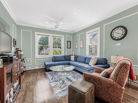 Discover this beautifully designed home that perfectly blends style and convenience with brand new central air system. A welcoming foyer opens to a sun filled living room that flows seamlessly into the dining area and an eat in kitchen with granite countertops and modern updates, ideal for hosting. Step outside from the kitchen to the private patio and backyard for easy indoor outdoor living and dining al fresco. Upstairs, retreat to the primary bedroom with barn doors leading to a walk in closet plus an additional bedroom and full hall bath. The walk out basement offers a versatile rec room, laundry, storage, and direct access to the 1 car garage. Perfectly located near Metro North, bus stops, Bronx River Pkwy, parks, shops, and restaurants—this home offers the best in comfort, lifestyle, and convenience.