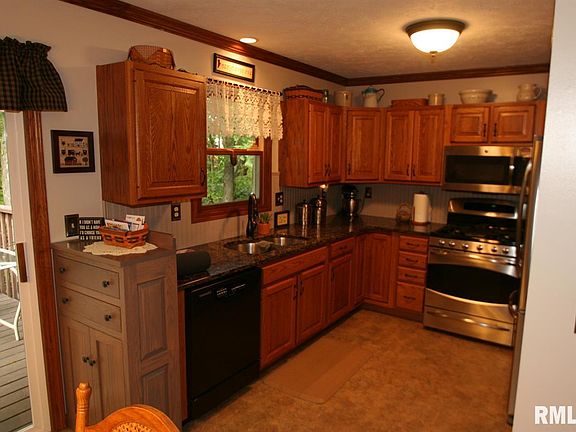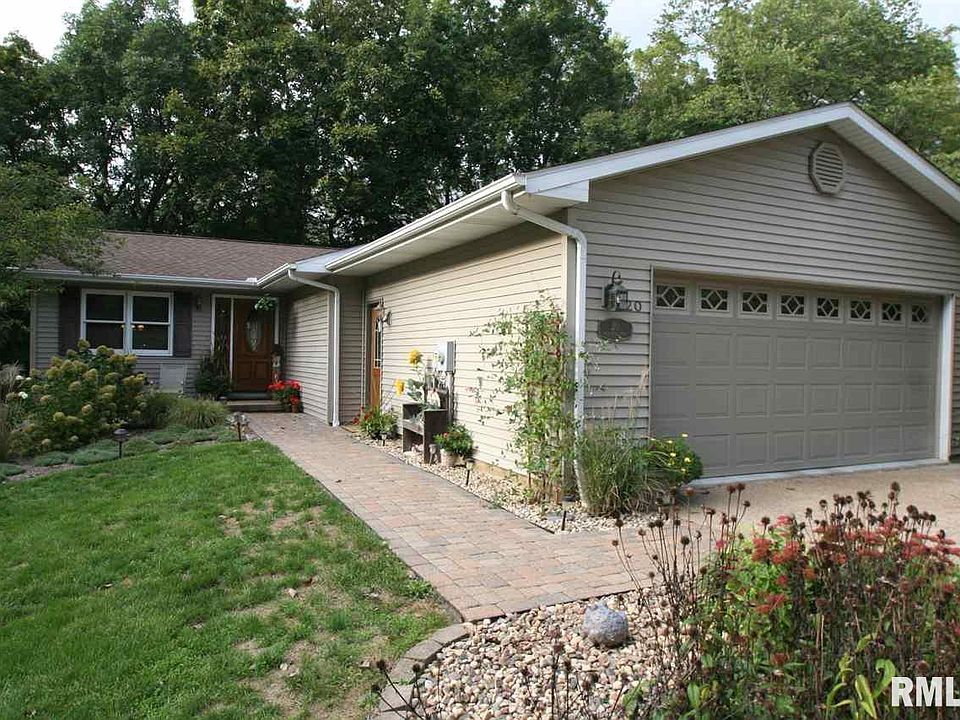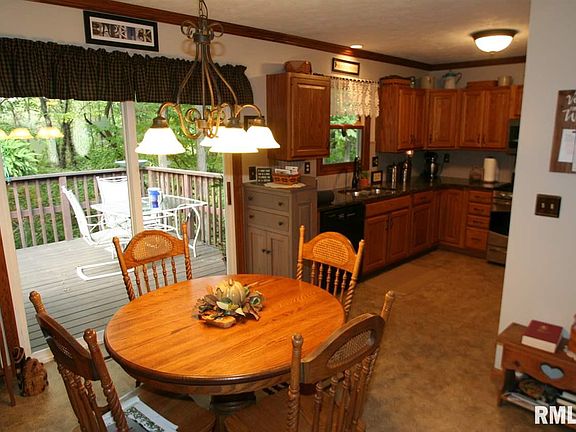 Beautifully landscaped home in Heritage Lake, Mackinaw. 3 bed, 2 bath ranch located at end of culdesac backs up to wooded area. Master has full bath with walk in closet. Plenty of storage throughout with dedicated laundry room. Walkout basement has finished family room with kitchenette and patio with hot tub. Drink coffee in the morning off kitchen deck while listening to birds singing. Shed for lawn mower and storage. Come enjoy the lake and amenities Heritage Lake has to offer. Mackinaw winery is within 3 miles.