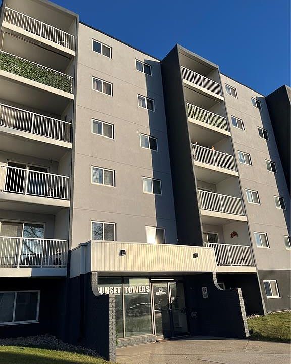 Top floor condo unit located in The Sunset Towers. Building offers an inviting atmosphere and residents have access to an amenities room directly off the lobby. Unit has a spacious living room with large sliding doors to the west facing balcony with an abundance of natural light. French doors lead to a bedroom that could also be used as an office. Kitchen features newer vinyl plank flooring and stainless steel appliances which are included. Unit also offers a second bedroom, 4 piece bathroom and in suite storage. Laundry is conveniently located across the hall for easy access. Located close to all north end amenities including a grocery store, restaurants and mall.