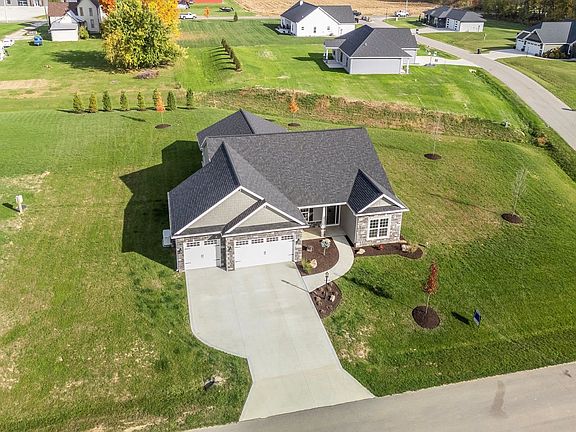 New, quality-built home by Kiracofe Homes. This three-bedroom two bath home sports oversized three bay garage with sunroom and covered porch plus an office. Perfectly designed with room to spare. Located in the new Sycamore Glen subdivision located northwest of Angola, this home comes loaded with features like a 35-year roof, concrete drive, no-care vinyl windows and insulated garage doors. Equipped for low energy costs with Lennox 95% AFUE furnace, 13 SEER central air and high efficiency water heater. Super insulated with a combination of spray foam and batt, R-45 over living areas! No rust fiberglass entry door greets you and the gas log fireplace warms you. All stainless Frigidaire Gallery series appliances, granite countertops and breakfast bar round out the kitchen. Master bedroom suite has walk-in closet, twin sink vanity, separate tub and walk in shower. There's a large sunroom off the rear with covered porches front and rear. Color matched brushed nickel faucets and lighting throughout. Lockers in mud room conveniently found off the garage entry. A must-see home in Angola! Buyer should verify schools, dimensions and other items important to them. Includes whole house generator.