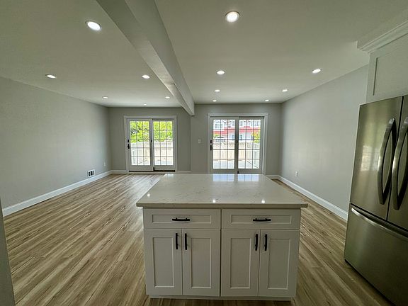 Large open floor plan living room perfect for entertaining. Large kitchen island. Brand new stainless steel appliances, dishwasher, refrigerator, gas stove.
