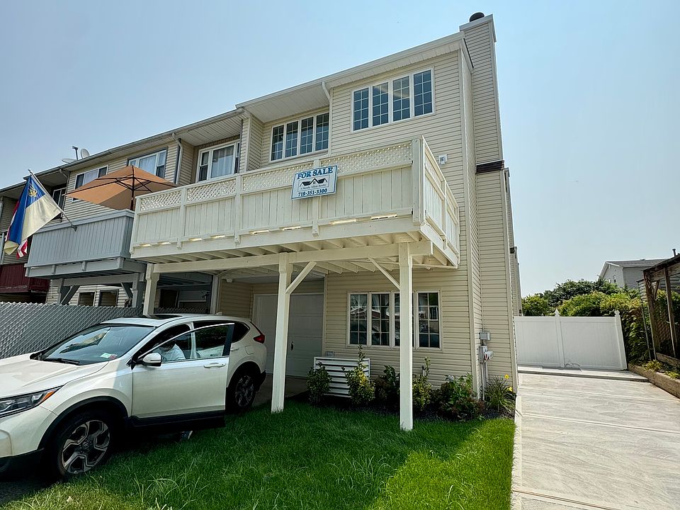 Featuring a beautiful large white picturesque deck overlooking the quiet suburban street.