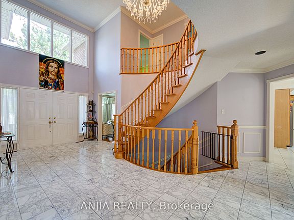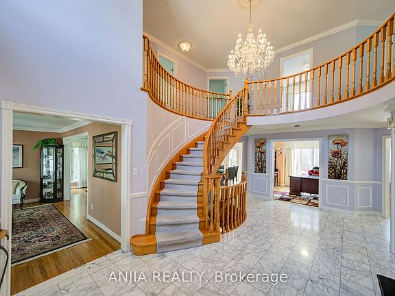 Interlocking drivewayNew storm doorCurb appealDetailed mouldingsGrand marbled two-storey foyerStunning circular oak staircaseDen with french doors