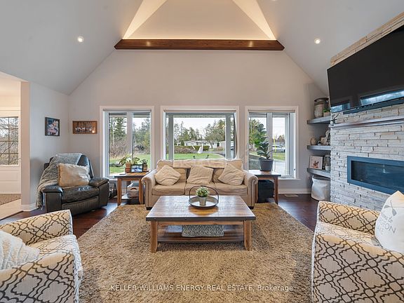 Discover this incredible custom-built 3 bedroom, 2 bathroom home, offering a perfect blend of luxury and comfort just minutes from scenic Sturgeon Lake and 0.5km from the boat launch. This upgraded home features a stunning 19-foot vaulted ceiling in the main living area, creating a grand, open atmosphere, enhanced by a cozy gas fireplace. The kitchen boasts quartz counters and breakfast bar next to the formal dining area. Step out onto the expansive 45'x12' rear deck - perfect for entertaining or relaxing with a cup of morning coffee. Enjoy the convenience of main floor laundry and direct access to the oversized, double insulated attached garage. The finished lower level provides a den and versatile rec space complete with an electric fireplace - ideal for extended family or guests. This move-in ready home combines comfort, style and a fantastic location surrounded by nature! **Roof, furnace, AC all approx 2015, septic 2023, HWT is owned