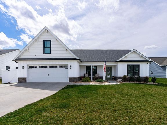 This beautifully upgraded modern ranch features a fully fenced yard, sleek LVP flooring, and vaulted ceilings that flood the great room with natural light. The chef’s kitchen boasts a quartz waterfall island, stainless steel appliances, and warm wood cabinetry. The primary suite offers a glass shower and dual vanities, with two additional bedrooms on the main level and a bonus room upstairs. The large covered porch is perfect for entertaining, while pet lovers will enjoy the spacious yard with a dog run and storage shed. With a two-car garage and prime location, this move-in ready home has it all.