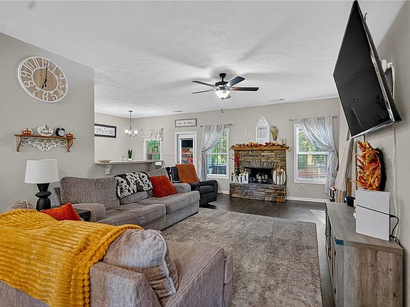Welcome to this beautiful home in Long Bridge Estates subdivision. This charming 3-bedroom, 2 bath home offers modern comfort and timeless style on a spacious, fenced-in, private 0.76 acre lot. Step inside to find an open, split bedroom floor plan filled with natural light and thoughtful design details throughout. The living room features a cozy stacked-stone fireplace and flows seamlessly into the kitchen and dining room making it perfect for family gatherings or entertaining guests. The kitchen boasts granite countertops, stainless steel appliances, and ample cabinet space. The primary suite is a true retreat with dual vanities, a relaxing garden tub, a separate shower, and two walk-in closets. Luxury vinyl plank flooring extends through the main living areas, while carpet creates comfort in the bedrooms. Enjoy peaceful mornings or relaxing evenings on the covered back porch, with a wood burning fireplace overlooking your large, level, fenced-in backyard. The home includes a two car garage, covered front entry, and energy efficient features throughout. Nestled in a quiet neighborhood this home offers the perfect blend of privacy and convenience. Just minutes from shopping, schools, and local recreation spots.