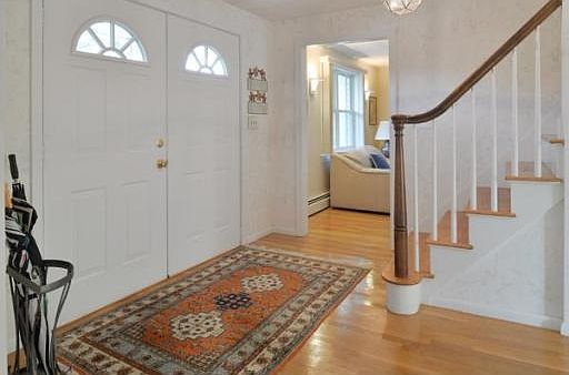 Located on a corner lot in residential area, this well cared for 9 Room/4Bedroom/2.5Bath Colonial has a first floor family room with fireplace, eat in kitchen with sliders to deck, master bedroom and bath, lower level playroom, 2 car garage and a lovely landscaped yard with paved recreation area. Improvements: Pella windows, Burnham gas heating, central AC, irrigation system. Easy access to the walking path to reach the high school, beach and downtown.