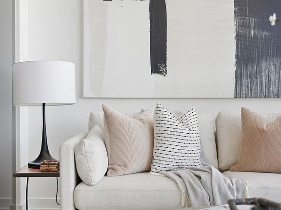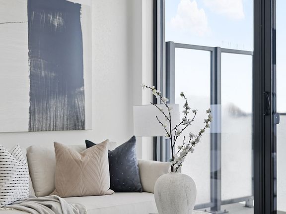 Modern gourmet kitchenSleek integrated appliancesTranquil primary bedroomSpa-like ensuiteSeparate denExpansive viewPanoramic city views