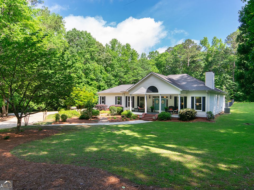 Welcome to this beautifully maintained ranch home nestled on a generous 1.61-acre private lot in Newnan. This spacious 3,197 square foot property offers three bedrooms and two and a half bathrooms in a thoughtfully designed layout. As you approach, you'll notice the meticulously manicured lawn showcasing the owner's attention to detail. Relax on the inviting front porch with room for rocking chairs and porch swing to enjoy peaceful mornings. Step into the foyer, greeted by an office with a cozy fireplace and built-in shelves on one side, and a bonus room or formal dining room on the other-both featuring elegant French doors. The kitchen boasts a walk-in pantry, butler's pantry, and island with breakfast area flowing into a spacious family room. The split bedroom design provides privacy, with the primary bedroom featuring a tray ceiling, walk-in closet, and French doors leading to a stunning sunroom. Enjoy the luxury of the ensuite bathroom with its spa-like walk-in shower and double vanity. The sunroom serves as a tranquil retreat with its vaulted beamed ceiling, fireplace, and abundant natural light overlooking the backyard oasis. Outdoor living shines with a refreshing saltwater pool, patio area, and lounging space - perfect for entertaining or unwinding. Feel like you're living in a private retreat while staying close to Downtown Newnan and nearby amenities. This property offers the perfect blend of comfort and natural beauty. Schedule your tour today!