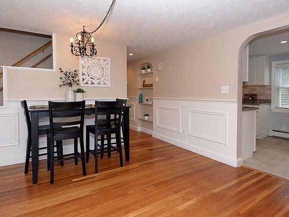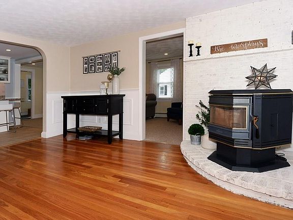 4 bedroom Cape located on a picturesque tree lined street at the end of a cul-de-sac! Beautiful soft wall colors, newer white kitchen with granite counters, stainless steel appliances, breakfast bar and tile floor. Front to back living room with recessed lighting and lots of windows allowing lots of natural sunlight. The dining area is just off the kitchen with hardwood floors and pellet stove, perfect for entertaining and family gatherings. The first floor is complete with two bedrooms, both with hardwood floors and a full bath. The second floor offers two spacious bedrooms, full bath and large walk in attic storage. Off the living room is a most convenient mud room with closet that leads to the newer deck and yard, Large storage shed in back yard. SHOWINGS BY APPT ONLY, SAT 8/22 11-1 SUN 8/23 12-2