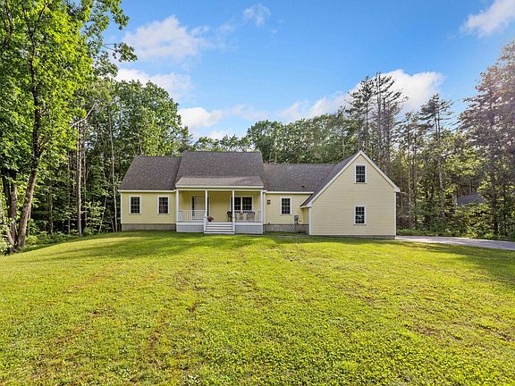 Only 5 minutes from the Center of Kennebunk and 10 minutes from area beaches, you will find this lovely 2018 Cape, offering 3-BR/2.5 BA PLUS a 1-BR apartment over the garage.. IT ALSO INCLUDES: an unfinished room, ideal space for someone needing a home office (includes skylights and rough plumbing for a bath). Privately sited on a 3-acre parcel, this lot is perfect for a game of tag, pets or gardening. Strolling up the walkway, you will be greeted by a large covered front porch, a tranquil spot for morning coffee or enjoying a good book. On entering, there is a generous coat closet and attractive staircase to the second floor. The kitchen/dining/living room are Open Concept and include a gas fireplace and slider to the sunny back deck. Adjacent is the den with a second gas fireplace. The wing on the left holds a lovely master bedroom suite with bath which includes both an oversized shower and soaking tub. Next to the garage is the back entry with the laundry and half bath. The second floor offers 2-bedrooms, an unfinished room, a full bath, large walk-in closet and home access to the accessory apartment (over the garage). This apartment also has access from an exterior staircase w/deck. The apartment is compact but includes a dining area, appliance kitchen, living room, bedroom and full bath. Under the house is a full walk-out basement, perfect for a home workshop, hobbies and storage. The house and apartment are heated with an efficient propane furnace. SHOWINGS START AT THE OPEN HOUSES ON SAT, JUNE 22, 11:00 -1:00 AND SUN, JUNE 23, 11:00 - 1:00.
