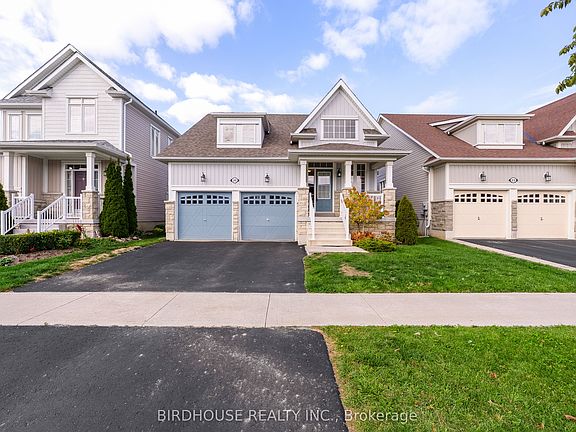 BUNGALOW - Beautiful "Hogan" model features 9' ceilings, laundry, 2 bedrooms & 2 bathrooms all on one level. Located in a fantastic neighbourhood next to the Lindsay Golf & Country Club, Victoria Rail Trail & across the street from Logie Street Park which features a lovely playground, splash pad & walking trails! The open concept living room is centred around a natural gas fireplace. The eat-in kitchen features quartz countertops & a nice centre island with optional seating plus a walk-out to private backyard, spacious deck and fully fenced yard. Lovely hardwood flooring throughout & stylish California shutters on most windows. The main floor primary bedroom has its own ensuite complete with quartz countertops and a walk-in tiled shower. Entrance from the double car garage directly into the home. The full height unfinished basement provides plenty of storage space with the possibility of additional bedrooms & living space. Outback you'll find a furnace, AC & roof shingles installed 2014.
