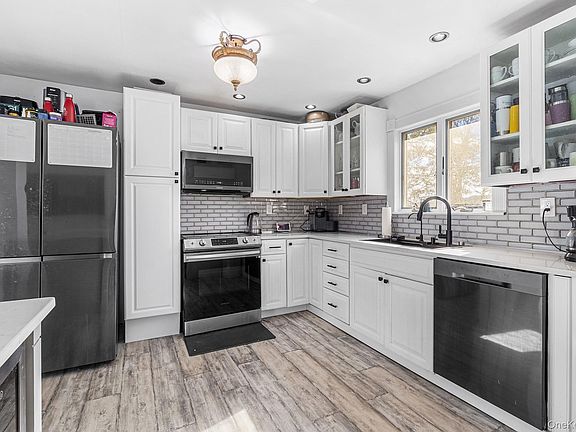 This wide-line high ranch has been expanded and was completed renovated within the last 4 years. Featuring a large amount of living space, 5 bedrooms and 2 full bathrooms. New doors, windows, floors, kitchen and a garage that is climate controlled. This home offers the possibility of income with the right permits.