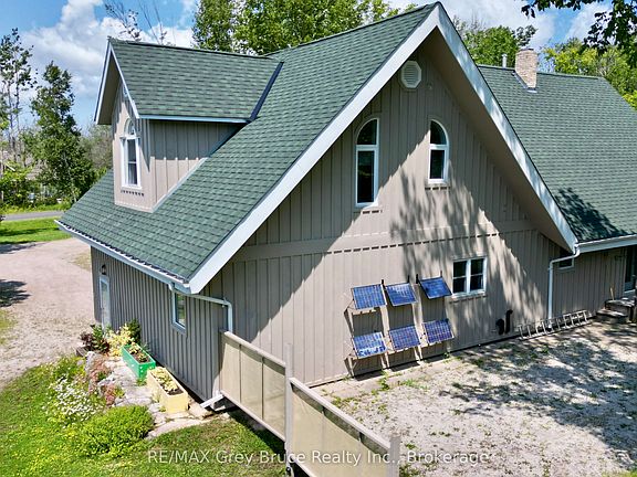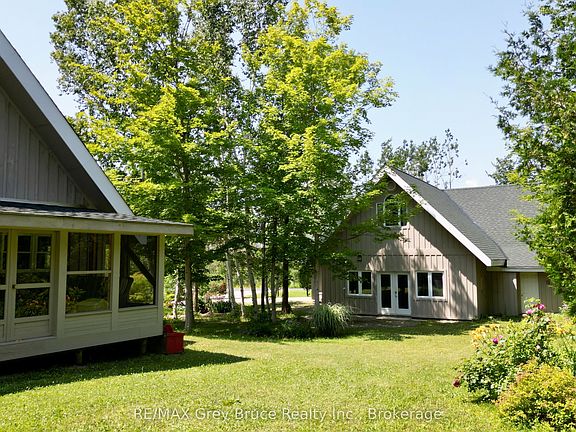 Welcome to 20 Maple Drive in Miller Lake! This lovely and immaculate custom built home is situated on a large lot measuring 166 feet wide x 196 feet deep. Home was built by the original owner & retiring contractor & boasts of character and charm throughout. Inside the home on the main floor, you'll find a uniquely designed open concept with a living area, dining, and kitchen. The kitchen has an island counter with plenty of storage. If you enjoy baking, preparing meals and entertaining guests, you'll appreciate the large gourmet cook stove in the kitchen! The living area has a high efficiency woodstove insert that will keep you warm and toasty on those frosty winter days. There is also a bedroom, a three piece bathroom, laundry closet, & an enclosed sunporch/room. The second level has the primary bedroom, a four piece bathroom, and reading nook/study. There is also an open loft that serves as extra sleepovers, office space and or exercise area. Vaulted ceilings. Beautiful wood floors throughout and with in-floor heat. There is an attached garage with in-floor heating that also serves as additional entertainment space. The owners have used it for family and friends' gatherings. A second building has both an additional 24 X 48 garage with a 2-piece bathroom. There are 3 rooms above the garage that are heated and insulated, and have been used as bedrooms. There is also a 24 x 20 workshop in this second building. It has underfloor heating, and ample power for woodworking machinery. At the end of the day, enjoy a relaxing soak in the hot tub! Property is nicely landscaped. Home shows very well and has been meticulously cared for. Property is located on a year round paved municipal road. Rural services are available such as garbage and recycling pickup. Roads are plowed during winter time. Centrally located between Lion's Head and Tobermory for grocery shopping & other amenities. There is a good public access to Miller Lake just a short distance away. Taxes: $3897.00.