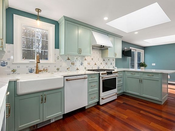Nestled on a corner lot, this French country designed home is the epitome of elegance and functionality. The living room features a bay window and gas fireplace flanked by custom built-ins. A Parisian inspired bathroom boasts a clawfoot soaking tub, glass enclosed tiled shower w/seat, and plantation shutters. Entertain with ease in this European style kitchen with skylights, custom cabinetry, quartz countertops, designer Café series appliances, tiled backsplash, and farmhouse sink w/copper faucet & accents. The expanded kitchen overlooks the back yard, offering plenty of space for a dining table in addition to Breakfast bar seating. Designed with relaxation in mind, the fenced-in back garden has a Trex deck, pavers, and patio overlooking a Japanese Zen Garden w/flowering shrubs and trees. Easy access to I-95, RT 128 & commuter rail. Mins. to Blue Hill Country Club for golf enthusiasts, Blue Hills Reservation park/ski resort, shops, restaurants and everything Canton has to offer.