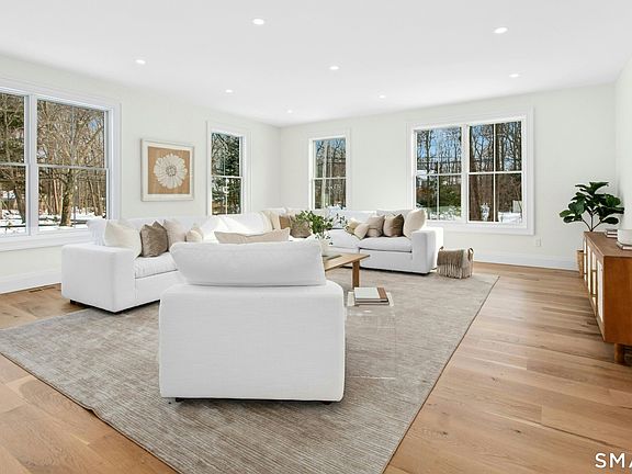 New construction and ready for 2026! On a coveted Darien cul-de-sac, this modern colonial boasts 6500sf of elegance and comfort. Step through the welcoming foyer, complete with a coat room and powder room, and into a spacious, light-flooded living room, perfect for gatherings that stretch into the evening. The custom kitchen is a true centerpiece, with a grand stone island, Thermador appliances, an oversized range, and abundant cabinetry. Surrounded by windows, the sunlit breakfast room flows effortlessly to the kitchen/great room, where a gas fireplace and beamed ceiling create warmth and character and flow out to an huge deck overlooking 1.2 private acres. A first-floor office with full bath offers flexibility for work, guests, or a quiet retreat. Everyday ease continues with a mudroom, half bath with stunning, floating quartz vanity, and an attached two-car garage. Upstairs, the primary suite is a serene escape with vaulted ceilings, a walk-in closet, and a private balcony overlooking the lush and private yard. Three additional en-suite bedrooms each feature custom walk-in closets, blending function with elegance. The partially finished third floor and lower level invite endless possibilities - a home gym, playroom, creative spaces, etc. This home has privacy and space for all and is only minutes from town, shops, the beach, golf, the train and all amenities. A new home for the new year!