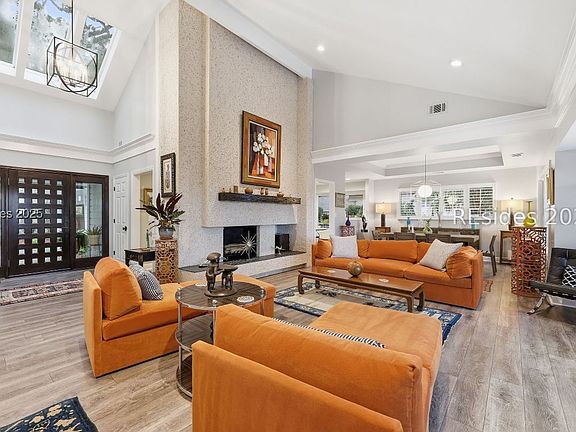 Unbelievable long marsh views! Located in the private Club Course area of Sea Pines, this creekfront home has been 100% remodeled, all on one level with not a single step inside. Featuring 3 bedrooms, 2.5 baths, and a 2-car side-entry garage, this turnkey property offers high ceilings, a charming tabby fireplace, and a fantastic back deck with a waterfront gazebo overlooking the marsh. The expansive backyard provides plenty of room for a pool, and the sunsets are truly unbeatable. Everything has been done for you- new doors, new kitchen, and new bathrooms. Move right in and enjoy Lowcountry living at its best!