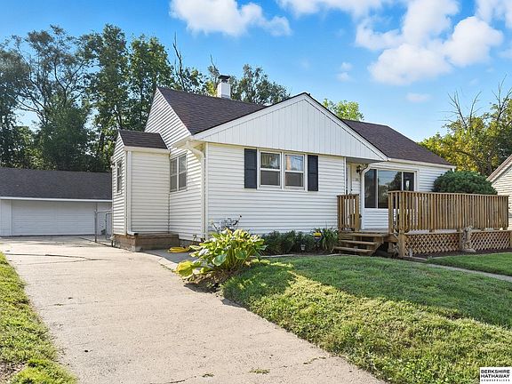 This 2-bedroom, 1-bath home is nestled in a well-established neighborhood near Offutt AFB and Highway 370. Inside, you'll find a spacious living room with wood floors and neutral tones throughout, making it move-in ready. The large eat-in kitchen offers ample cabinet space and comes complete with all appliances. Enjoy the updated bathroom with modern touches and a generous primary bedroom for added comfort. This home has a new electrical panel. One of the standout features is the oversized, detached, cedar garage, freshly painted and perfect for a workshop, storage, or parking multiple vehicles. Enjoy outdoor living with a welcoming front deck and fenced yard. Whether you're just starting out or looking to downsize, this home offers comfort and convenience.