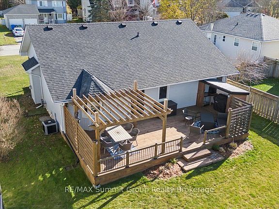 This bungalow feels good the moment you walk in. The main level is open concept with a cathedral ceiling that makes the whole space feel light and easy. The living room has a gas fireplace that quietly anchors the room, and the kitchen has plenty of storage and counter space so everyday cooking actually feels relaxed instead of crowded. There is space for people to chat, prep, taste test, or just hang out while dinner comes together. All 3 bedrooms on this level are a comfortable size, and the primary includes a 3-piece ensuite with a walk-in shower. The lower level is flexible and works well for real life. The family room and wet bar make Friday movie nights or sports nights something to look forward to. The den has a walk-in closet and could become a bedroom if the window is enlarged. There's also a 2-piece bath that has the plumbing and room to add a shower, plus a huge laundry room, storage space, and a smaller room behind the wet bar that works well as a pantry, hobby room, or just extra storage. Forced air natural gas heat and central air conditioning keep things comfortable year-round. Outside is where summer truly shows off. The back deck is oversized with a covered area for the BBQ or smoker, and there is room to enjoy both sun and shade. A pergola, a firepit area, and space to spread out make it the kind of backyard where you look up and realize you have spent half the evening outside without even noticing. The home has been very well cared for and is genuinely move-in ready. It sits on a quiet street with a cul-de-sac and a trail just a few doors away that leads right to the park. It works well for a family or for anyone who likes the comfort of main-floor living but still wants that extra space downstairs for weekend fun or everyday function.