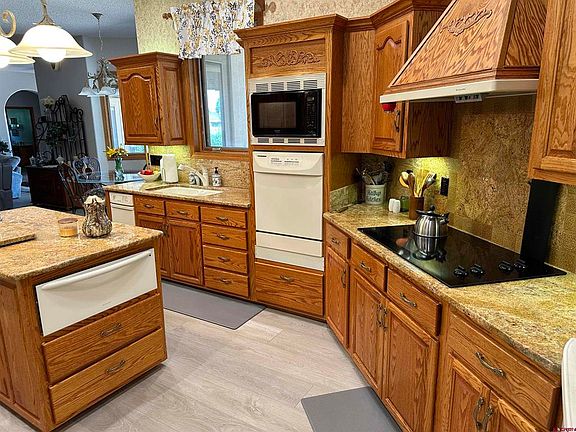 New price for this beautiful home located in a quiet neighborhood in Monte Vista. The expansive 4,729 square foot home has custom amenities throughout. The entrance boasts pillars, archways and crown molding, and opens into the formal seating area and dining room. The kitchen features custom oak cabinetry, granite counters and an island with a bar sink for food prep. There is also a second bar in the kitchen for work space and seating. A large family room opens from the kitchen area with a gas fireplace, built in entertainment center, casual dining area and an enclosed game room area. The primary bedroom suite has 2 bathrooms, 2 walk in closets, a custom built in bedroom set and seating area. The home also boasts an office area, laundry room, and pantry with extra refrigerator and freezer, a dry storage room and a 6 car heated garage. Outside, in the landscaped yard, is a covered patio with built-in gas grill and an awning. The home has decorative fencing around the home with two additional lots. This is an exceptional property listed under county value.
