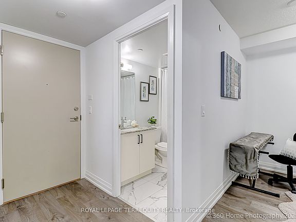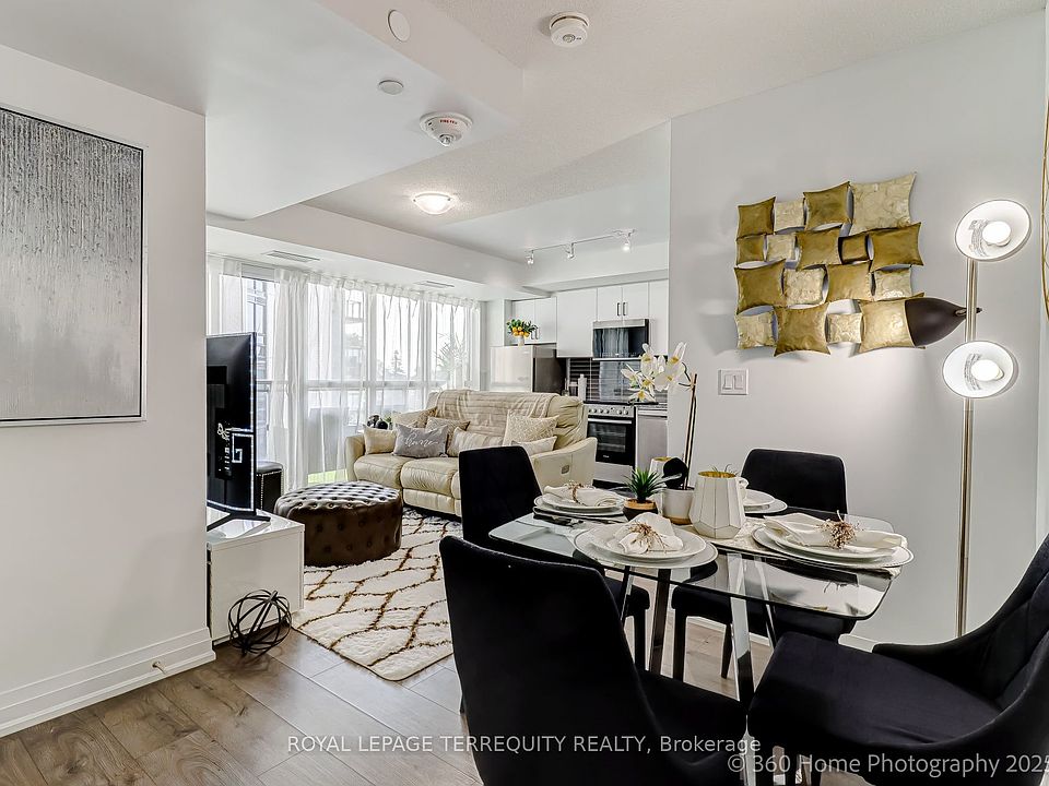 Move in and experience rewarding cozy city living in this stunning year-old 1 bdrm + den with two full baths! Comes with Owned parking & owned locker* Bright & spacious suite features a functional open layout, expansive floor-to- ceiling window & hardwood flooring throughout The sleek kitchen boasts contemporary cabinetry & quartz countertops, flowing seamlessly into the living area w/ a walk-out to your private balcony* East facing unit, welcome the morning sun* Primary bdrm with large closet & 4-pc spa-inspired ensuite bath* The den offers flexibility - ideal home office, studio, or guest room* Enjoy world-class amenities: rooftop terrace w/ pool & BBQ & outdoor fireplace + fitness studio, sports lounge, billiards & games room, yoga, theatre room, party room & guest suites. Steps to TTC, shopping, parks, school* Easy access to 401*Close to U of T & Centennial College* A perfect unit for professionals, downsizers or investors seeking long-term value.