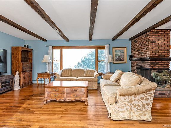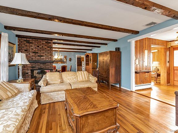 Brookville ranch 4 bedrooms 3 baths on 1 acre. Living room, dining room, den with wood burning fireplace. Primary king bedroom suite with bath and large closet, 2nd king bedroom, 3 full size bedroom and hall bath with double sink. Guest twin bedroom and bath, laundry area. Full unfinished basement with 2022 oil burner and water tank. 200 AMP electric panel. 2 Car garage, in ground sprinklers, 2015 roof.