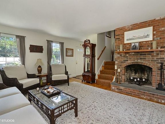 This impeccably maintained 3 bed, 2 bath Cape offers a well thought out floor plan. Hardwood floors and a brick fireplace highlight the living room that is surrounded by windows that let the outside in. The galley style kitchen, featuring stainless appliances, granite counters and ceramic flooring, is easy to navigate and opens to a first floor laundry area on one end and a sunfilled den on the other. Enjoy special or everyday meals in the formal dining room. The first floor bedroom is adjacent to a beautiful tiled bath with walk in shower. The second level features two oversized bedrooms with hardwoods, spacious closets, and eave storage as well as a bath featuring tile flooring, tub/shower with tile surround, and a double sink vanity with granite counter. The partially finished lower level offers a wealth of useful options and more great storage. There is also a utility room featuring an oil fired Buderus boiler for super efficient heating and hot water tank as well as a separate workshop. A large fieldstone patio highlights the fully fenced back yard teeming with mature plantings. Add a two-car, attached, heated garage, easy to care vinyl siding and insulated windows and you have the complete package. A great place to call home.