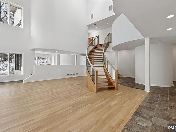 A rare architectural statement where scale, sophistication, and elevated luxury converge. Set on 3.7 private acres, the residence spans approximately 13,000 sq ft with 7 bdrms, 7 full baths and 2 half baths, designed for both grand entertaining and refined everyday living. From arrival, striking architectural lines, dramatic volume, and curated sightlines create a 'WOW' factor. The grand living room unfolds as a stunning open-concept space with soaring 32-ft ceilings, a sculptural spiral staircase, and a 2-sided 16-ft gas fireplace. Floor-to-ceiling windows flood the home with natural light, while views extend to the sun-drenched, heated indoor pool. The chef's kitchen pairs performance with modern design, featuring Wolf and Sub-Zero appliances, multiple ovens, wine refrigeration, coffee system, and premium finishes throughout. The main level also offers a private theater, gym, office, and first-floor au pair ensuite. The second level is anchored by a luxurious primary suite sanctuary with 20-ft ceilings, dual balconies, loft, sitting room, dual walk-in closets, and a spa-inspired bath with separate water closets and bidet. 4 addt'l bdrms include 3 ensuites and private balcony access.The lower level showcases the indoor pool, a 1,200-sq ft ballroom, dry sauna, full bath, and flexible space ideal for a wine room, cigar lounge, or recreation area. Additional highlights include a 4 car heated garage and dedicated elevator shaft. A truly one-of-a-kind Mendham estate!