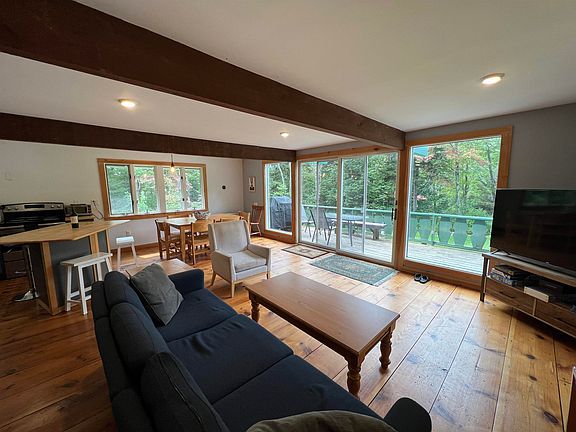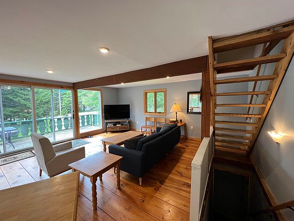 Located near Mount Snow this great chalet is located on a corner lot which allows for some nice outdoor space with firepit and deck to enjoy all seasons! This five-bedroom, three bath home offers a nice open concept gathering space on the main floor where you can enjoy spending time with friends and family after a day on the slopes. The kitchen with island looks out over the main living room space with large glass sliding doors where you'll get an abundance of light during those sunny days! Beautiful wood floors throughout the main living space, main floor bedroom and both second floor bedrooms. Bathrooms have tile floors with full baths on both the first and second floor. Three quarter bath is located in the walk out basement with additional kitchenette, open living with dining space and two more bedrooms. Property is being sold furnished. If you're looking for a nice ski chalet with open concept living space, then this is your place! Get in for the upcoming winter season!