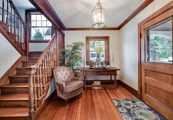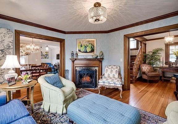 Welcome home! Steps from town, this completely renovated home is the perfect place to entertain, live and enjoy. Detail abounds in this home built in 1903 from its beautiful staircase, pocket doors, and fireplace. First floor features foyer, fireplaced living room, dining room, impeccably updated kitchen, sitting room, half bath and mudroom with access to both deck and patio. Kitchen includes island, granite counters, double ovens, gas cooktop, stainless steel appliances, recessed lighting, illuminated glass cabinets, which opens to the sitting room and dining room. Second floor boasts master bedroom with spacious en suite bath, second bedroom and family bath. Third floor is a perfect getaway with two additional bedrooms. Finished lower level with family room, laundry and third full bath. Home and yard have been tastefully renovated featuring new windows, kitchen, bathrooms, electrical, heating, cooling, landscaping and radiant heat in the kitchen, mudroom, half bath and master bath.