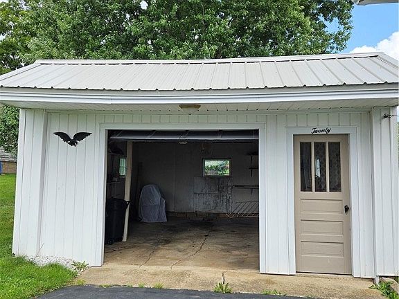 Absolutely adorable home with tons of charm! Nice level lot with detached oversized 1 car garage. First floor boasts a living room, dining room and kitchen with tons of natural light. Second floor has 2 nice sized bedrooms. A great covered porch to sit and enjoy your evenings. Close to the elementary school and park. This home has been well maintained and has a brand new roof on the garage.