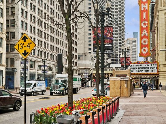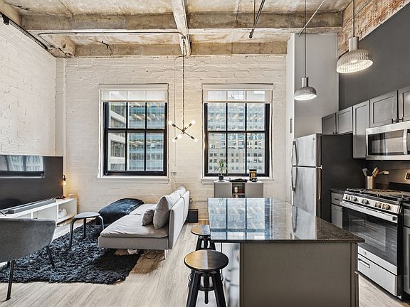 AMAZING opportunity to live on ICONIC State Street right in the heart of downtown. Discover your quiet sanctuary in this one-bedroom concrete loft with steps to the city's most impressive attractions, including The Chicago Theater, The Bean, Millennium Park, The River Walk, and so much more. As you walk into this home, you will be drawn to the soaring ceilings that flood the unit with natural light. This END unit was completely updated with designer finishes in 2021 and boasts all-new flooring throughout. New appliance package from 2021 with central heat and air. Assessments include everything but electricity! IN-UNIT washer/dryer plus extra large storage cage included in price. The building features a gym, private security fob entrance, bike storage, and a receiving room. Investor-friendly and pet-friendly! An intimate feel in the city makes this a true city oasis.