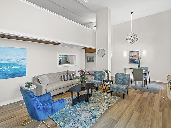 This condo with a loft as its master bedroom combines comfort, style, and a hard-to-find first-floor location. The dramatic vaulted ceilings and full-height windows fill the space with natural light, while the updated kitchen with GE appliances makes cooking a breeze. A unique feature of this unit is its standard staircase-something rarely found in the community. Residents enjoy resort-style living with access to an outdoor pool, fitness center, party room, on-site restaurant, laundry facilities, and professional management. Monthly HOA includes high-speed Internet, cable, heat, gas, water, and exterior upkeep. Heated garage parking available. Located minutes from Oak brook Center, Yorktown Mall, restaurants, and major highways, this condo puts you in the heart of it all. The building is owner-occupied, with no pets permitted (service and emotional support animals are allowed).