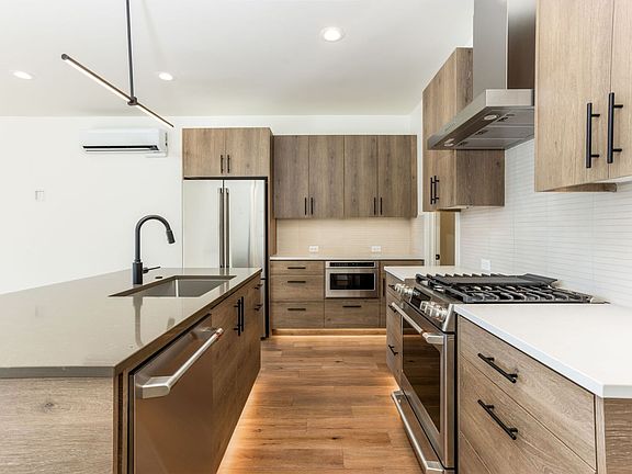 Gourmet Kitchen: The chef's kitchen features a full-length island, pristine quartz countertops, high-end stainless steel appliances (including a gas range and fridge), and abundant storage, making it ideal for culinary enthusiasts.
