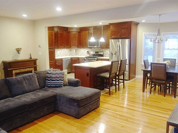 On a dead-end-street 2 Legal Family Duplex with separate entrances 3BR/2Bath & 1BR/1Bath. Beautiful Oak Floors throughout and high-hats. New Kitchen with porcelain flooring/ Granite Island. 2nd Floor Bedrooms both with walk-in-closets. New bath with Massage Jets & Jacuzzi Tub . Full Basement with tile flooring with Outside entrance, lots of windows lots of storage rooms and with outside entrance. 6 Months old 75 gallon Water Heater . Super Young Roof and Furnace appx 8 years old. Huge 2 Car garage private long driveway -huge backyard+ patio+sunroom.