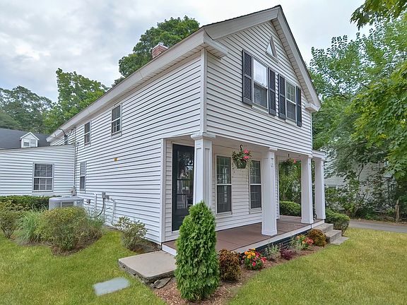 Location, location, location! Charming antique in the heart of downtown Holliston. This home has many updated major systems including plumbing, electrical, heating, central A/C and water filtration system (2018). Kitchen boasts tile floors, S/S appliances, Italian fireclay farmhouse sink, gas range, granite counter tops w/ half bath and updated laundry room. Hardwood floors flow throughout the main living areas and all bedrooms. The large corner lot has 3 driveways and a two level shed. Turn this into a potting room, chicken coop, playhouse or extra storage. Mature maple trees provide a pleasant canopy over the large patio space, perfect for outdoor entertaining. Home is steps away from the Upper Charles River Rail Trail allowing you to walk across the 8 Arch Bridge or all the way to Milford; Schools, shops, playgrounds, restaurants, farm stands and Lake Winthrop are steps away. Seller has full architechtural/engineer stamped plans for an addition that will convey w/ property.