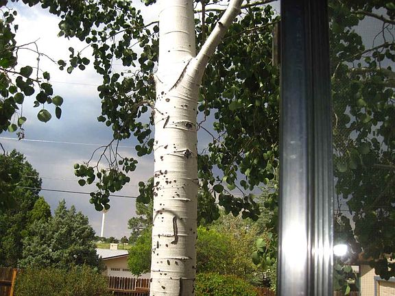 Santa Fe style home on Barranca Mesa! Nice courtyard in front, and patio in the back for entertaining. Beamed ceilings and a kiva fire place in the living room! Large corner lot. Split level home with 5 nice size bedrooms and 3 bathrooms. Hardwood floors throughout. Light and bright! Additional family room or play room with a wood fire place . Updated bathrooms with light color tile floors. Lot's of storage space inside and outside. 2 storage buildings.