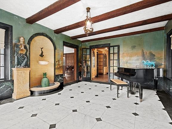 Old world elegance of a bygone era. The second owners of the historical Chatman Estate are ready to pass the torch. This adored home is situated perfectly, with only a 2 minute walk to Phillips Beach, just in time for the warmer months. The circular driveway sets the stage & greets you to the screened-in porch of this warm & beloved "cottage". As you enter the marble room, the hand-painted French wall covering makes you aware that you are about to enter a TRUE TREASURE. The worldly details & custom finishes are abundant throughout. Enjoy dining by the fire, and retreat to the generous living room with spectacular original woodwork for an after dinner drink in front of a roaring blaze. Front & back stairways lead to 6 generous bedrooms. The main ensuite boasts another lovely fireplace, as does one other bedroom. The third floor offers 2 more bedrooms. Escape & luxuriate in the Finnish steam room. There's a separate driveway to the carriage house with a studio above. See the two videos!