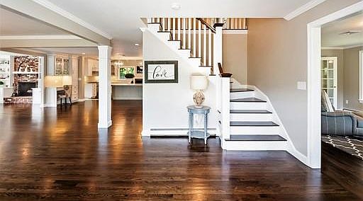 Show Stopper! Extraordinary remodel of Thaxton Heights Colonial. The design and presentation of this gourmet kitchen is exceptional and magnificently well appointed. Some design features are 9 foot quartz island framed by gorgeous oversized orb pendants, two farmers sinks, high end stainless appliances including 6 burner gas stove w/ custom hood, wine fridge, superior quality cabinetry and gas fireplace. So much to explore here...details are endless. Master suite with amazing master bath boasting oversized tiled shower, luxurious soaking tub and double sink vanity ..truly an oasis! Refinished hardwood throughout home with rich , warm finish and new paint throughout interior and exterior. Lower level with heat and AC continuous adds so much with rec/fitness room and oversized mudroom or lower level den....bucolic setting with sight lines to conservation land and wonderful privacy accent this exquisite property.. 5 zone heat and central AC . Move in, entertain... and enjoy perfection!